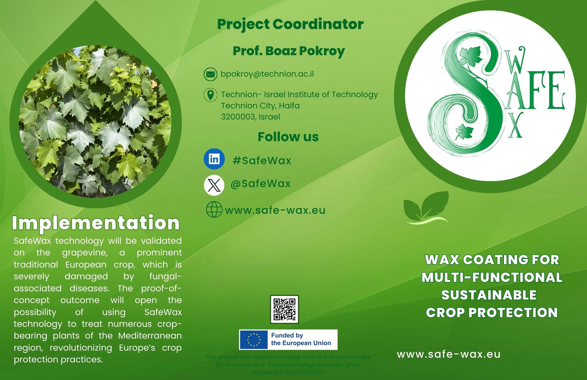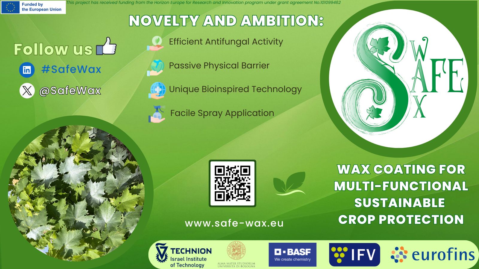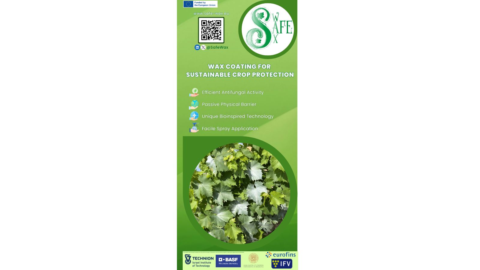 Dissemination Material Flyer Roll-Up Brochure Movie Download the file Download the file Download the file Your browser does not support the video tag. Safewax Project – Sustainable Bioinspired Wax Coating for Multi-Functional Crop protection