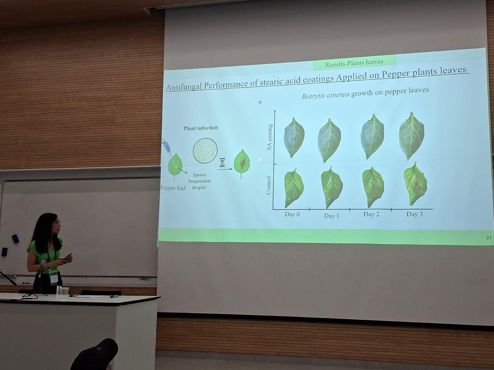 Her talk highlighted impressive results showing the ability of SafeWax coatings to significantly reduce fungal growth on treated surfaces. These bioinspired, biodegradable coatings represent a promising step toward more sustainable crop protection.